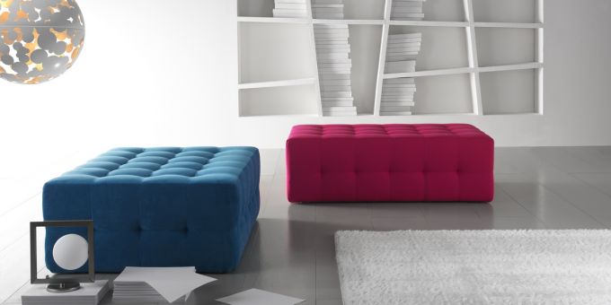 Pouff rettangolari realizzati in poliuretano espanso con trapuntatura non sfoderabile.